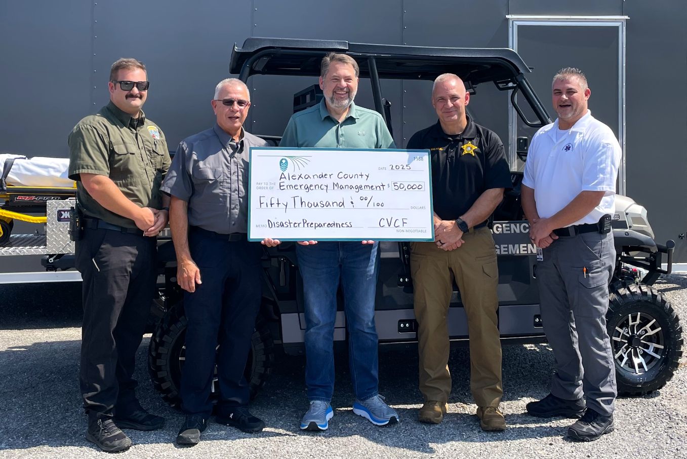 Alexander County Emergency Management has purchased a new utility terrain vehicle with a $50,000 grant that was provided by the Catawba Valley Community Foundation, a North Carolina Community Foundation affiliate.